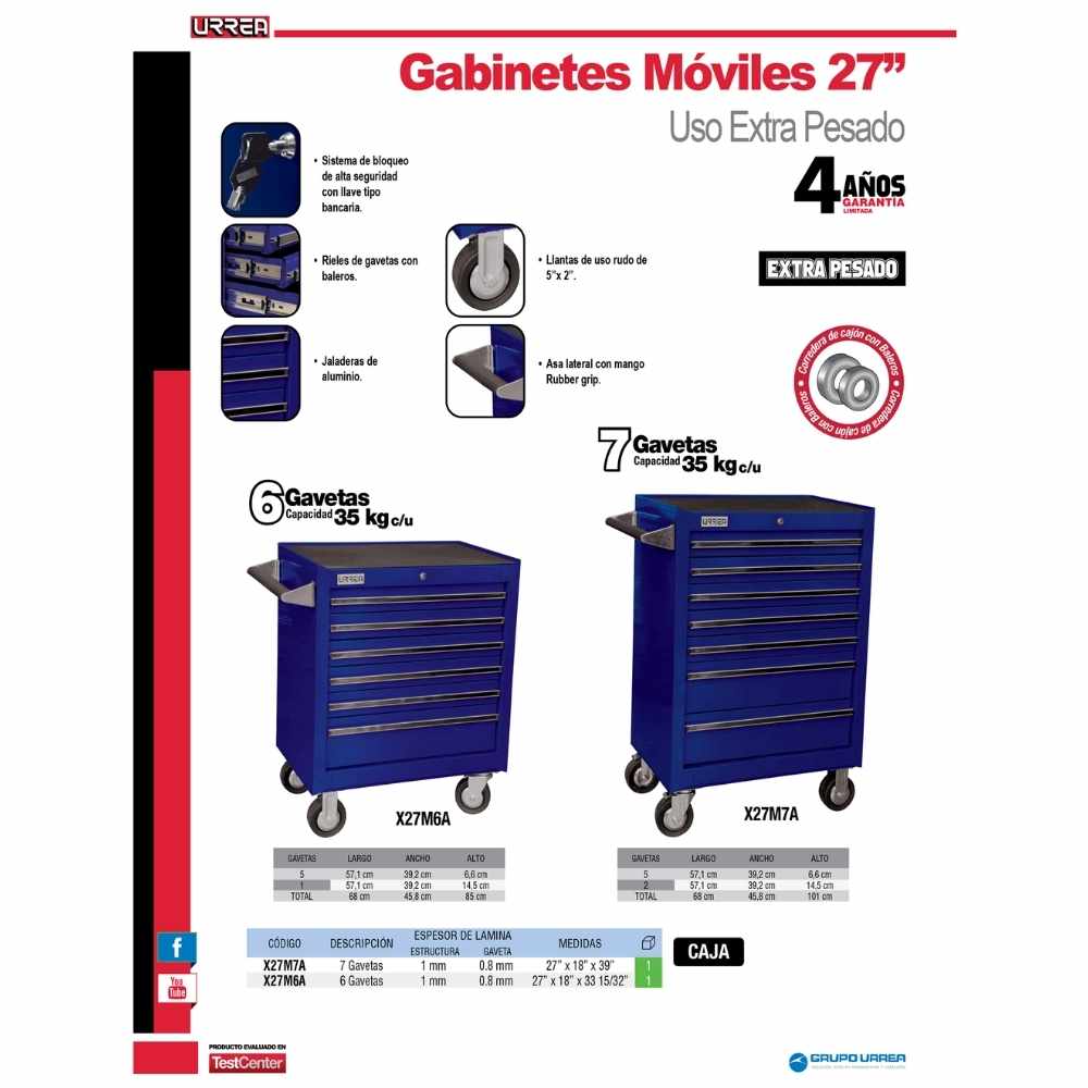 Gabinete móvil 6 gavetas color azul serie X 27″ Urrea