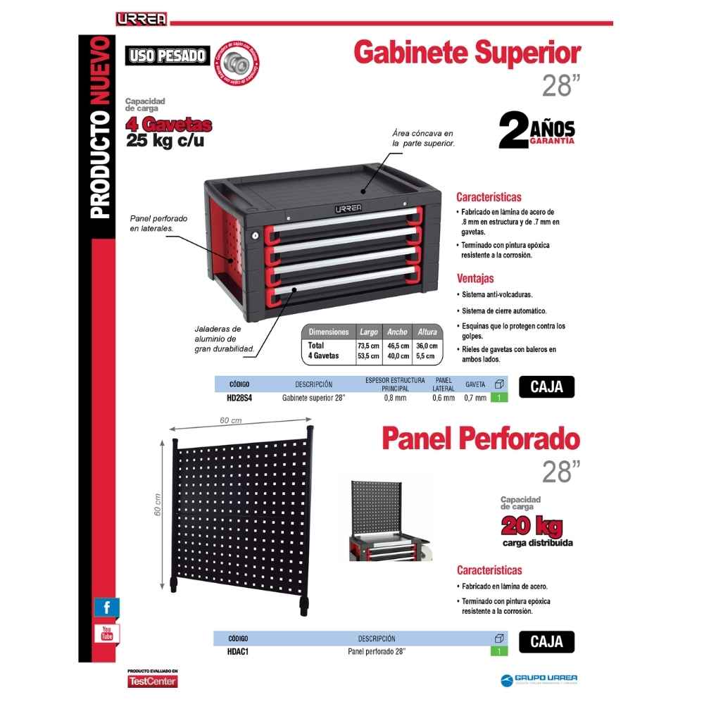 Gabinete superior 4 gavetas color rojo y negro serie HD 28″ Urrea