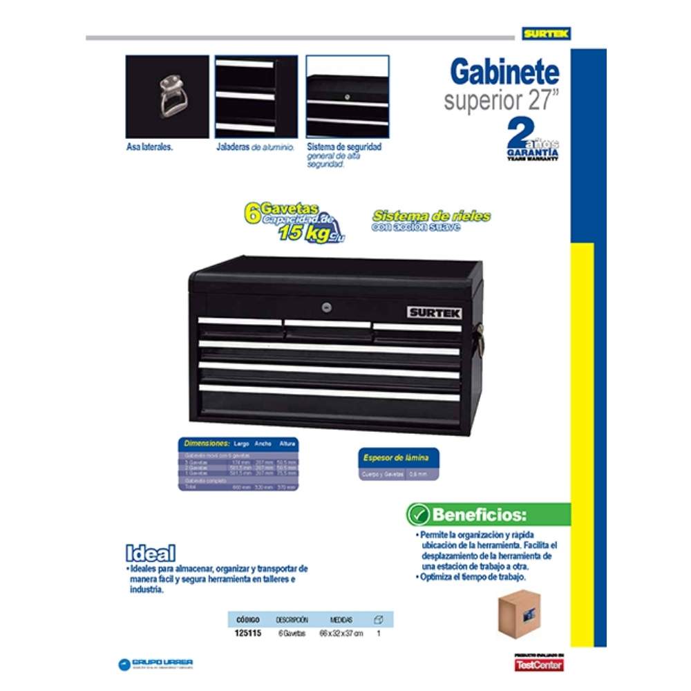 Gabinete superior color negro 6 gavetas 26″ Surtek