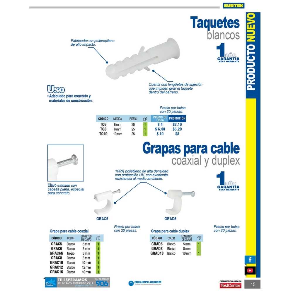 Grapa para cable dúplex 8 mm, color blanco, 20 piezas Surtek