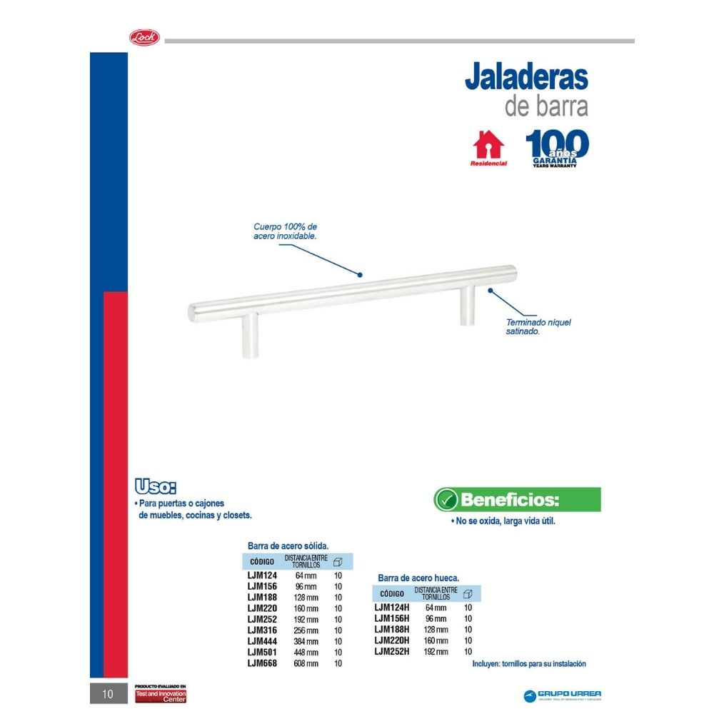-Jaladeras de barra s?lida de acero inoxidable.