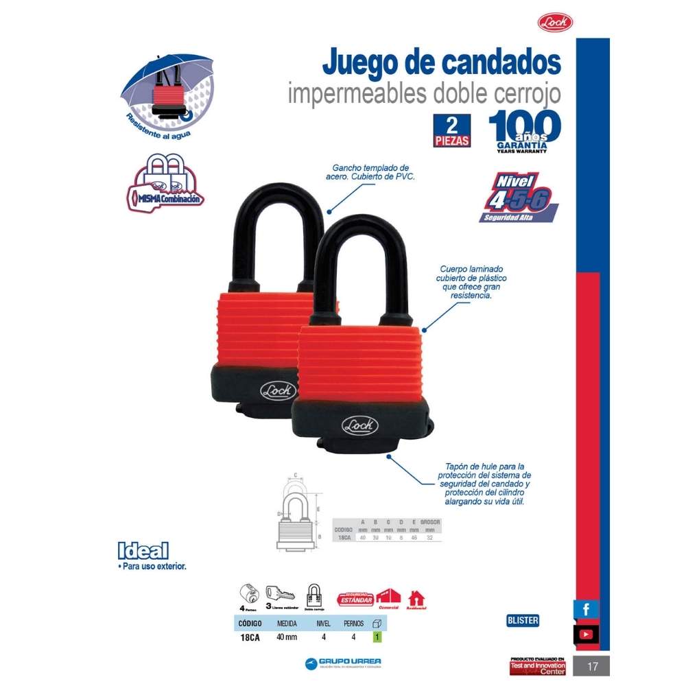 Juego de candados impermeables largos 40 mm, llave estándar, 2 piezas Lock