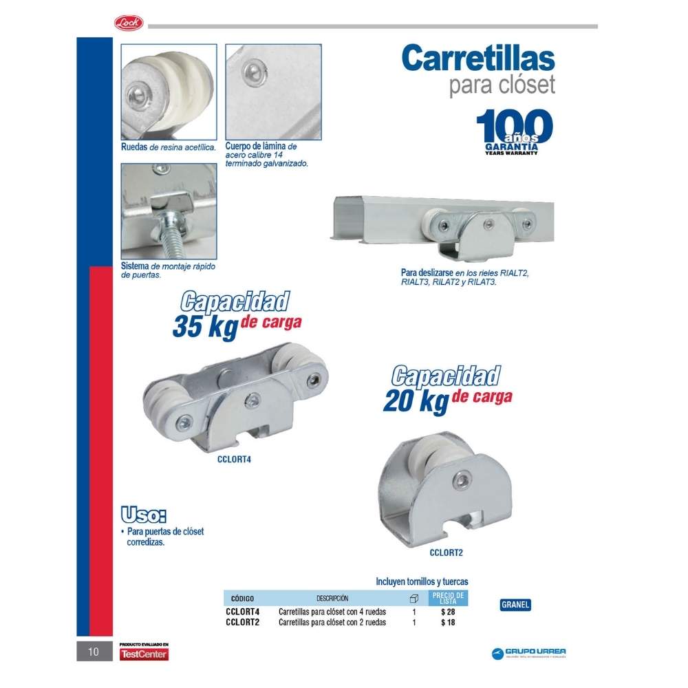 Juego de carretillas riel TT 2 baleros para clóset, galvanizada Lock
