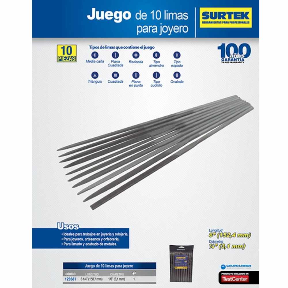 Juego de limas combinadas para joyero, 10 piezas Surtek