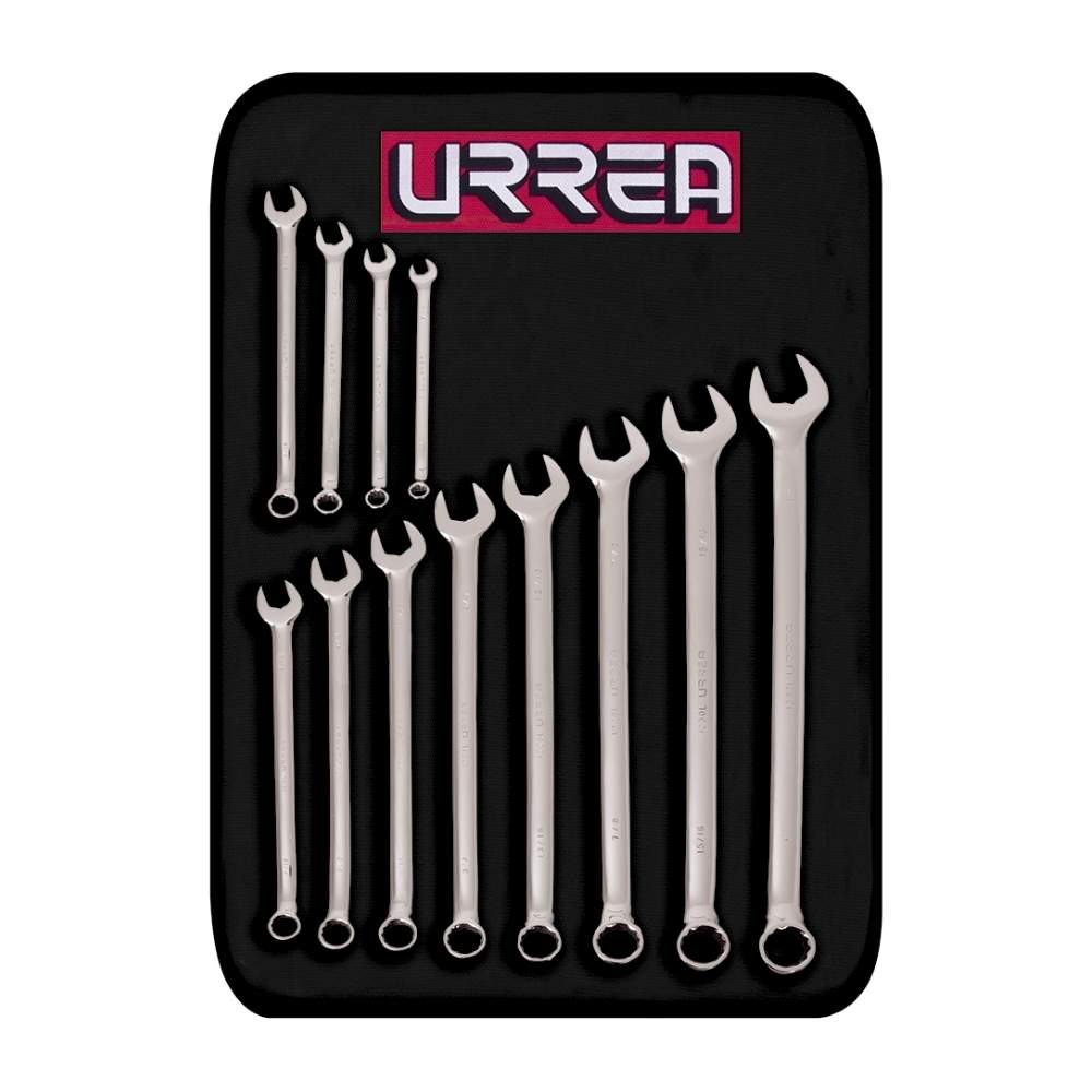 Juego de llaves combinadas pulido espejo extra largas mét, 12 puntas, 12 piezas en estuche Urrea
