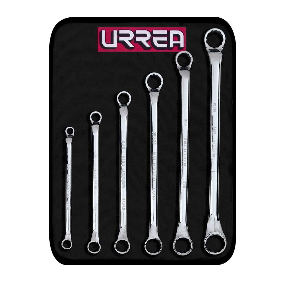 Juego de llaves de estrías pulido espejo de 45° en pulgadas, 12 puntas, 6 pz en estuche Urrea