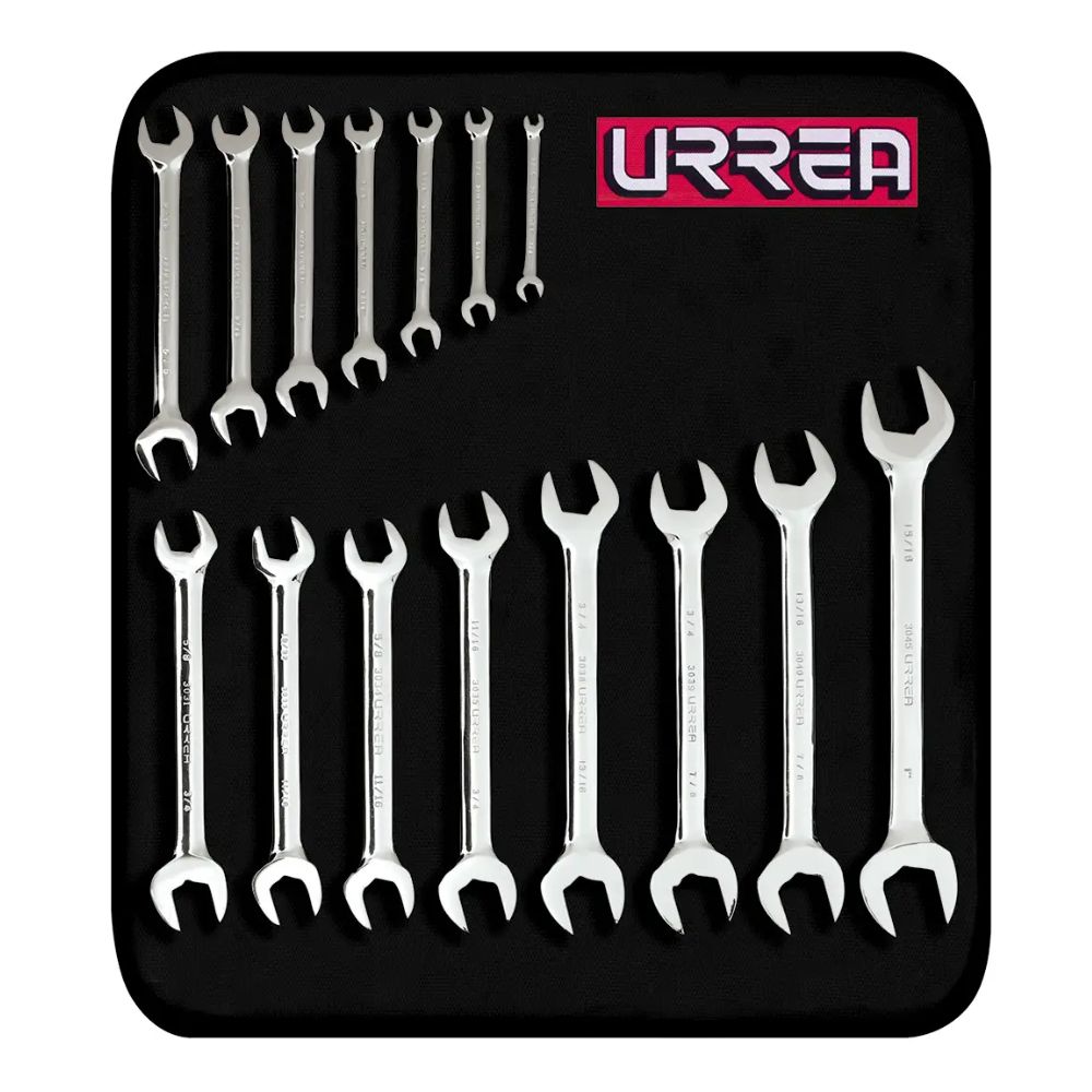 Juego de llaves españolas pulido espejo en pulgadas, 15 piezas en estuche