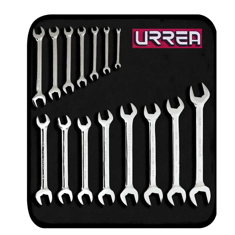 -Juego de 15 llaves españolas pulido espejo en pulgadas Urrea