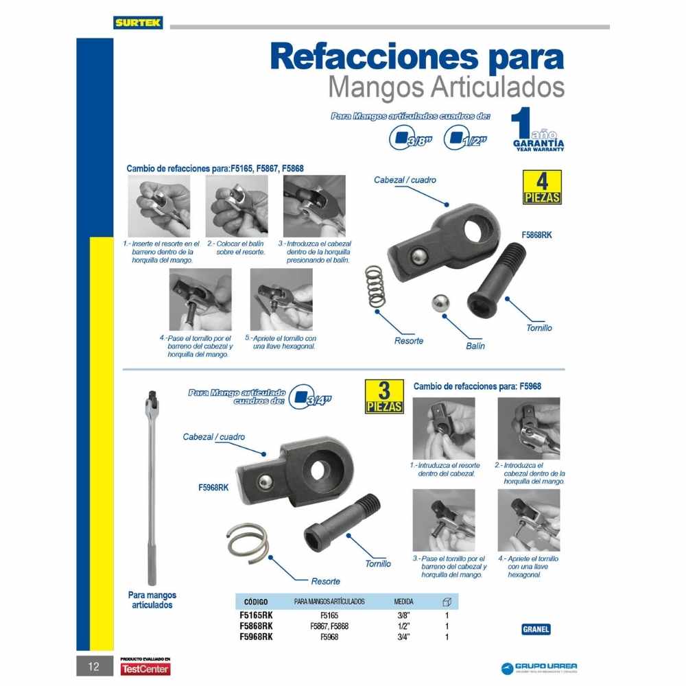 Juego de refacción para mango articulado F5867, F5868 Surtek