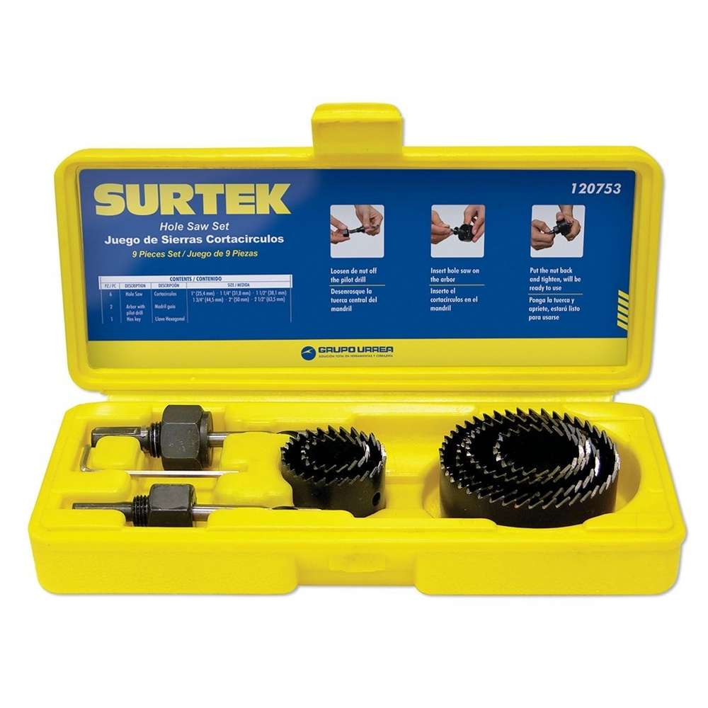 Juego de sierras cortacírculos, 9 piezas Surtek