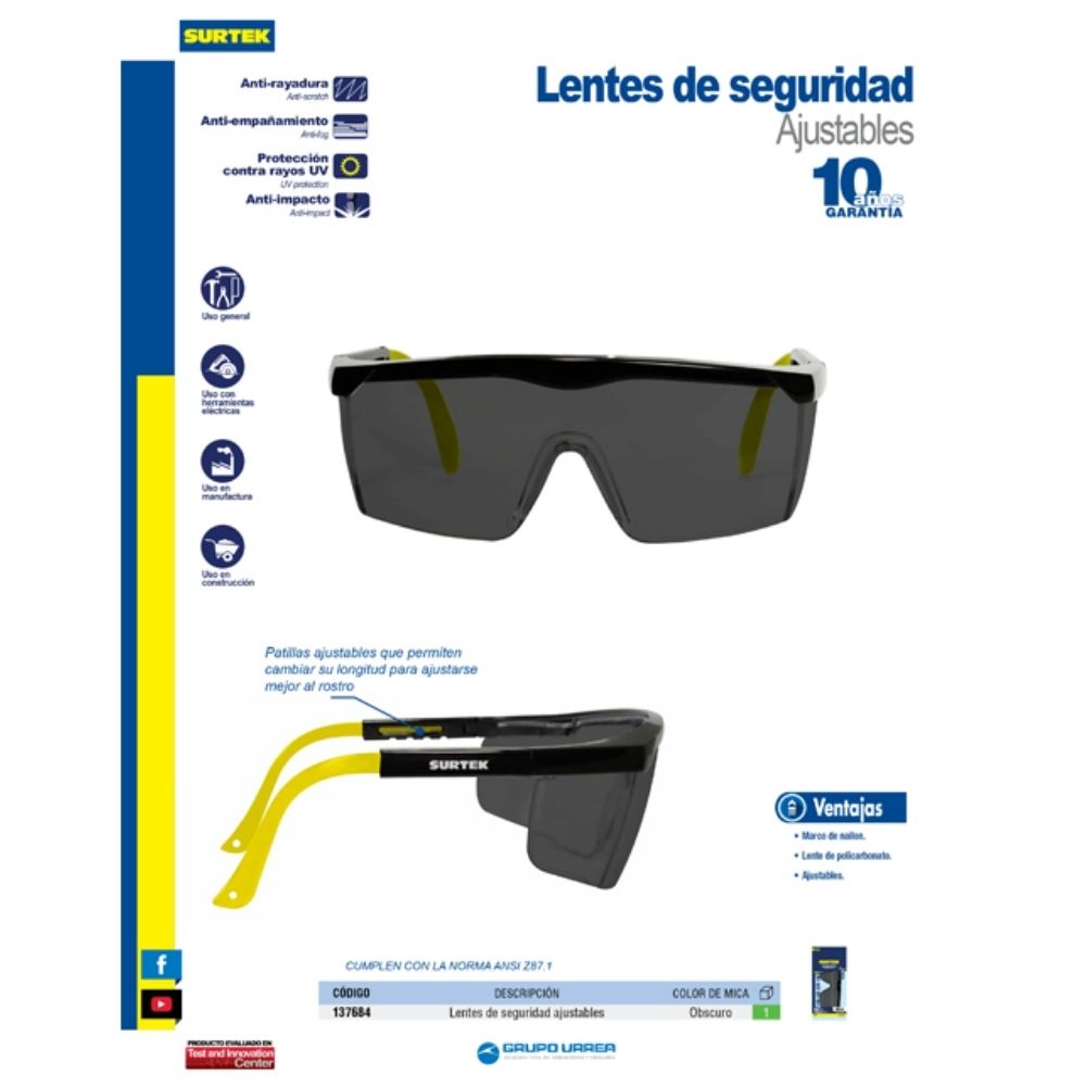 Lentes de seguridad modelo ajustable, oscuros Surtek