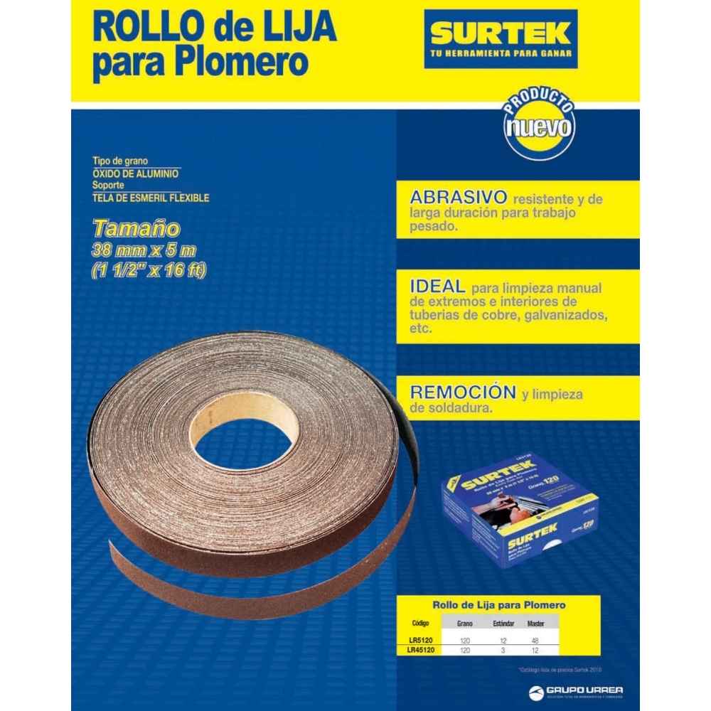 Lija en rollo para plomero 1-1/2 x 45 m, grano 120 Surtek