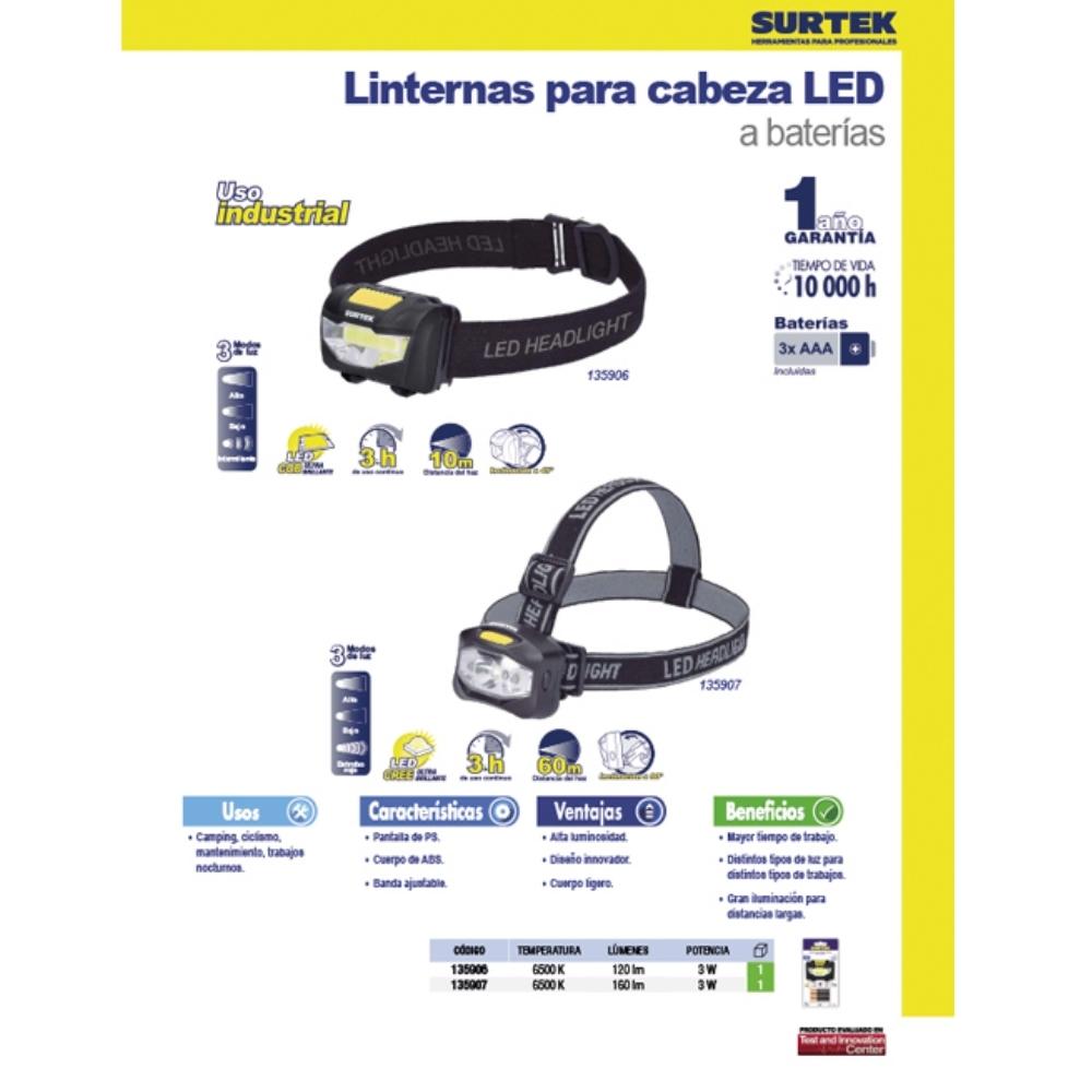 Linterna de LED para cabeza a baterías 3 pilas «AAA» de 120 lm Surtek