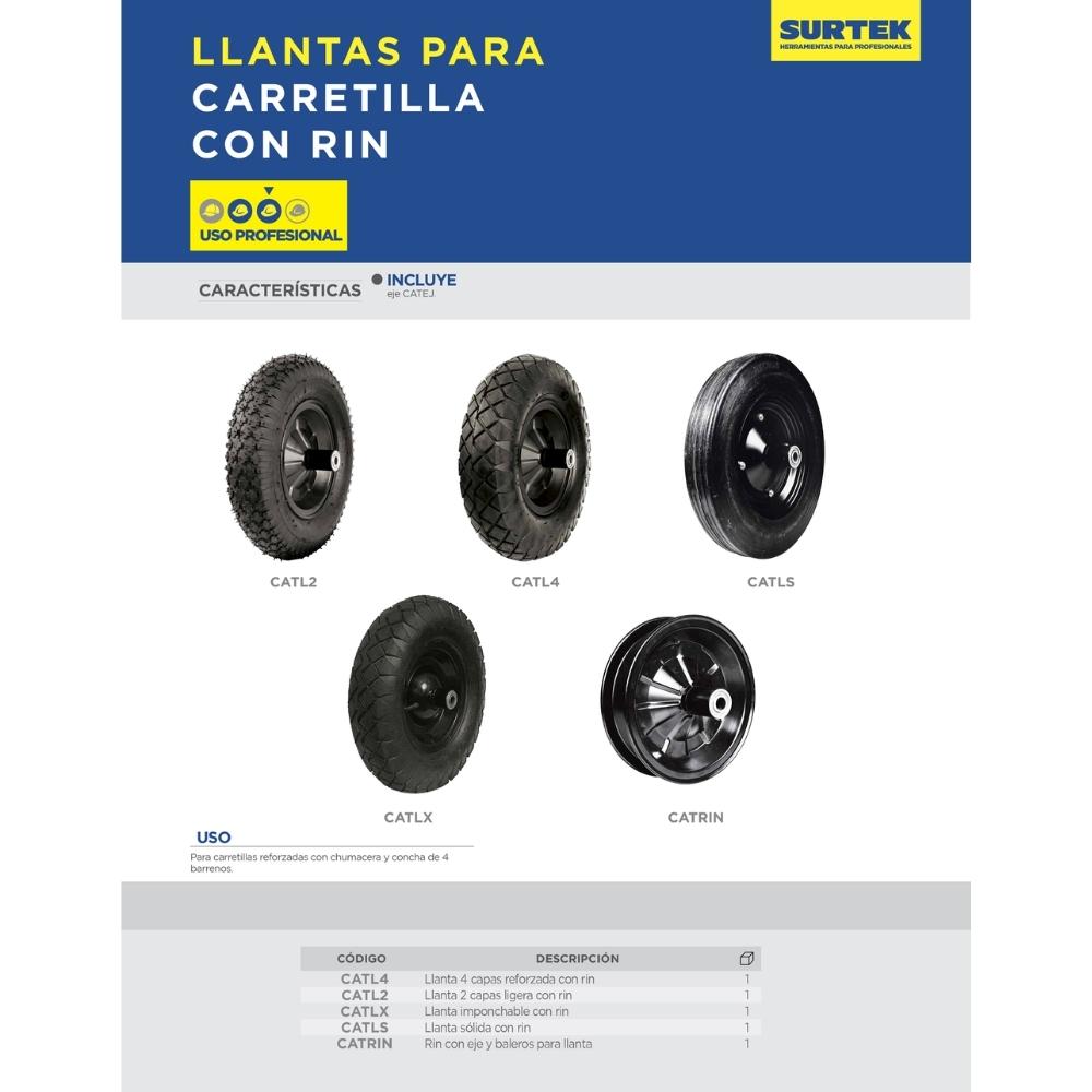 Llanta neumática reforzada de 4 capas de 16″ con rin para carretilla Surtek