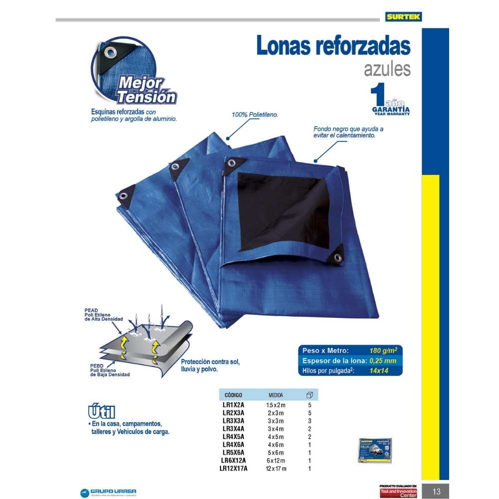 Lona de polietileno reforzada color azul, 2 x 3 m Surtek