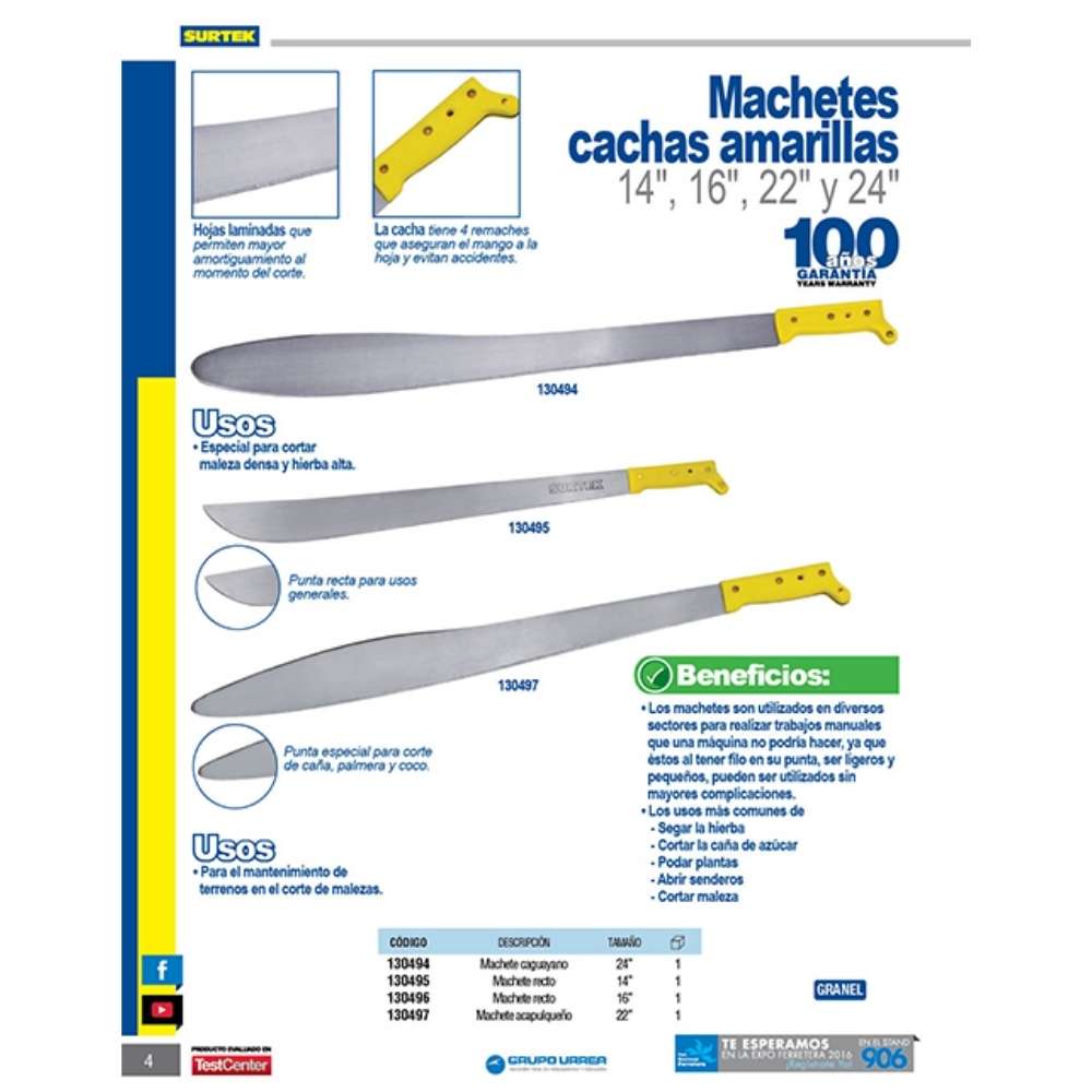 Machete laminado con mango amarillo caguayano 24″ Surtek
