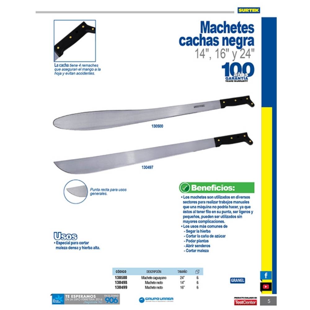 Machete troquelado con mango negro caguayano 24″ Surtek