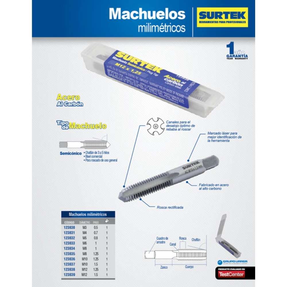 Machuelo de acero al carbón M8 x 1.25 Surtek
