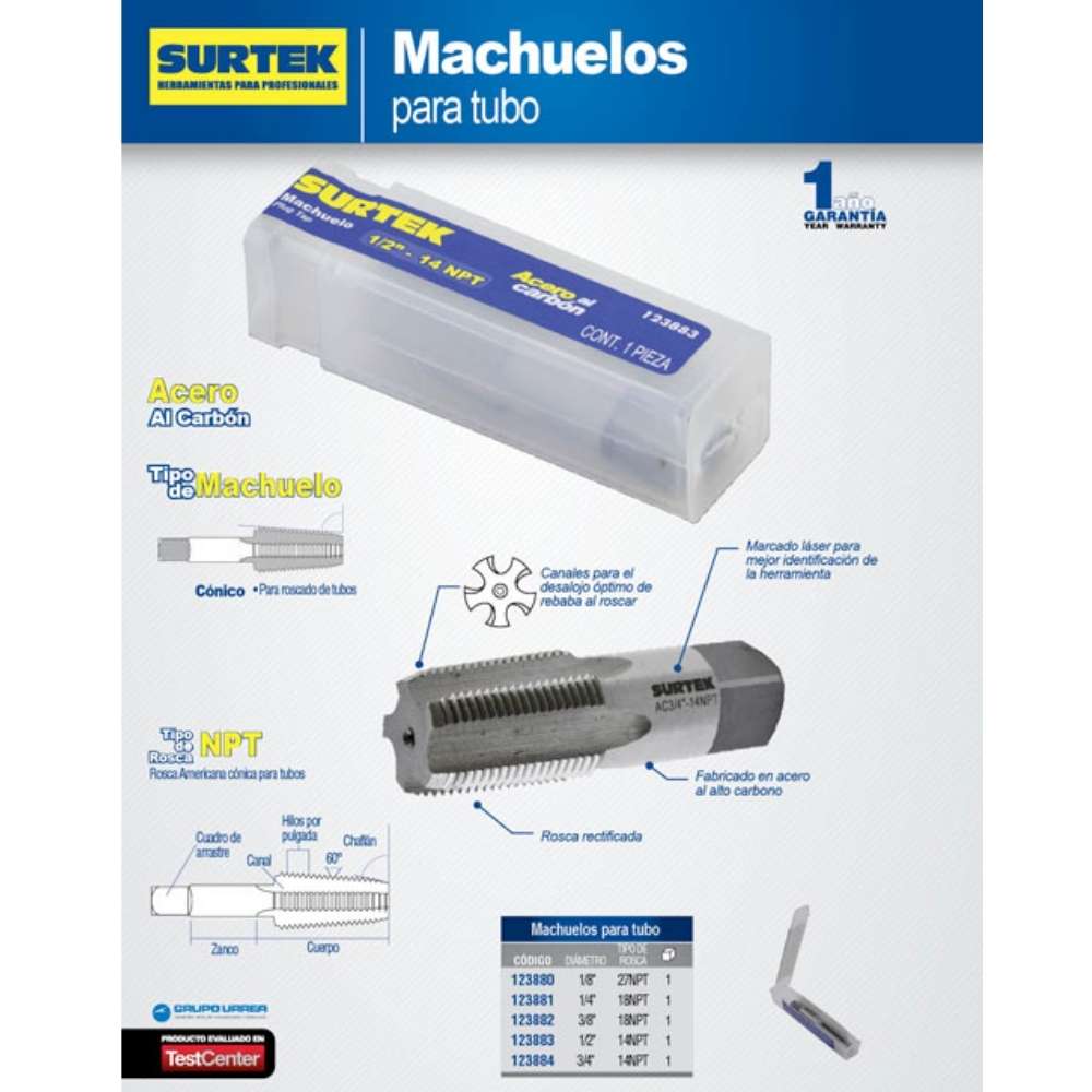 Machuelos de acero al carbón para tubo 1/2″ – 14 NPT Surtek