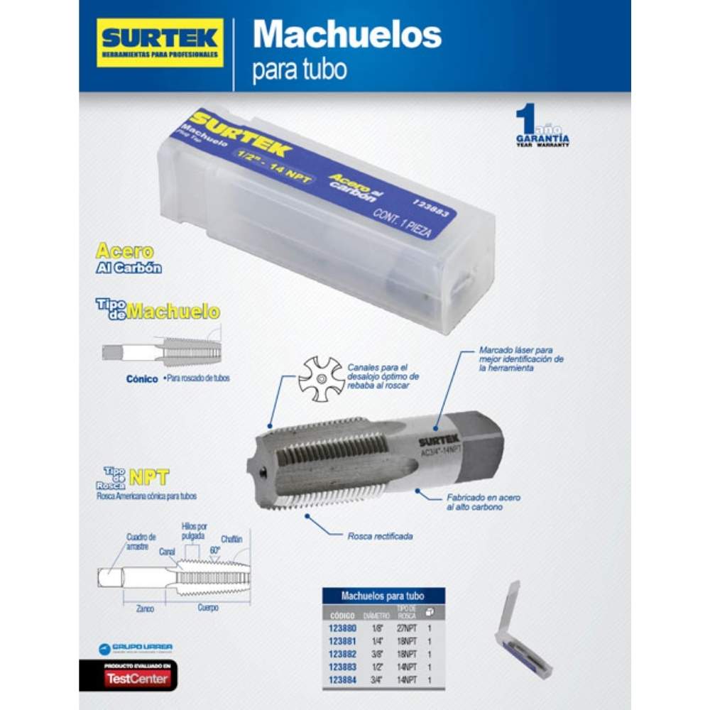 Machuelos de acero al carbón para tubo 1/4″ – 18 NPT Surtek