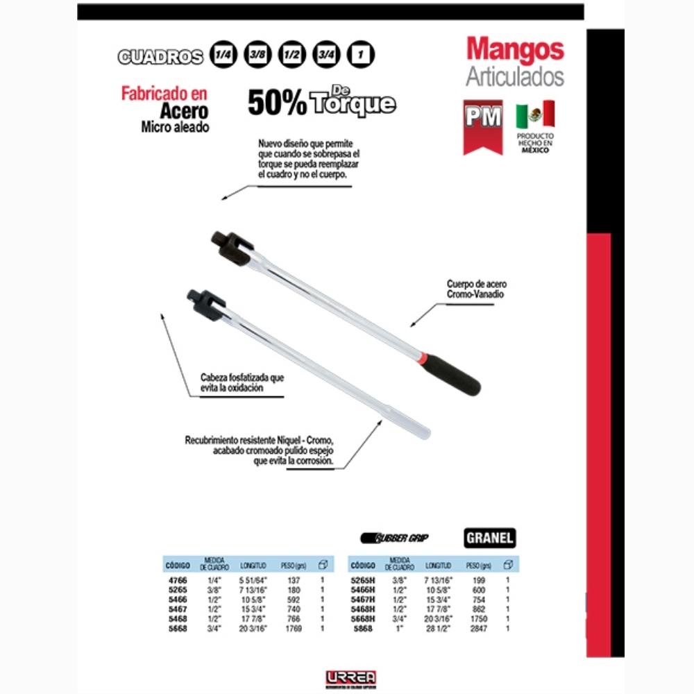 Mango articulado cromado para dado cuadro de 1/2″, 15-3/4″ Urrea