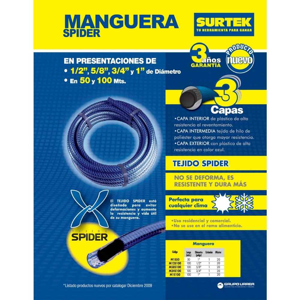 Manguera para jardín tejido spider en rollo 1/2″, 100 m Surtek