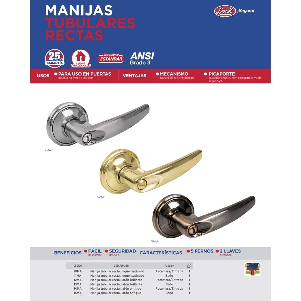 -Mecanismo tubular de función baño, acabado latón antiguo, cumple con ANSI grado 3.