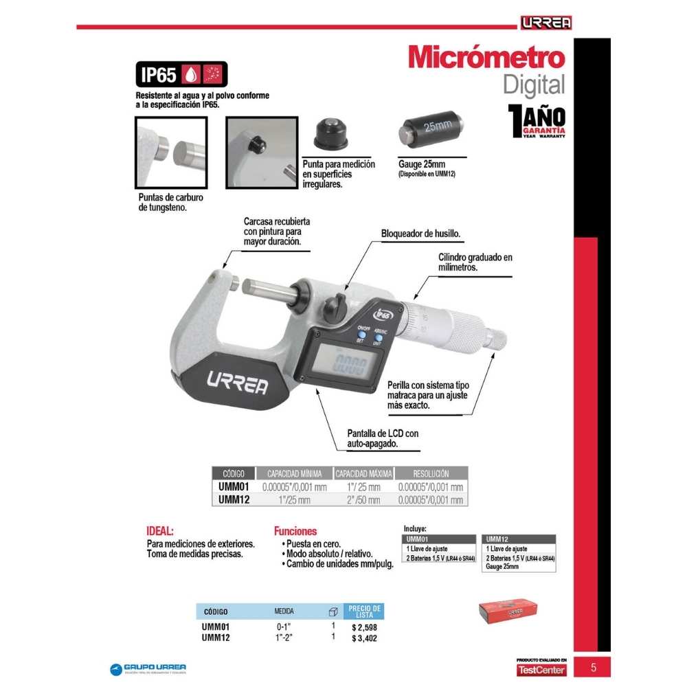 Sé el primero en valorar “Micrómetro digital 0 a 1″ Urrea”