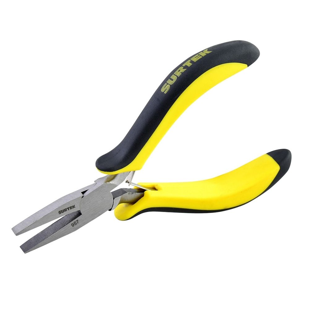 Mini pinza para electrónica con mango bimaterial de 4-3/4″ punta plana Surtek