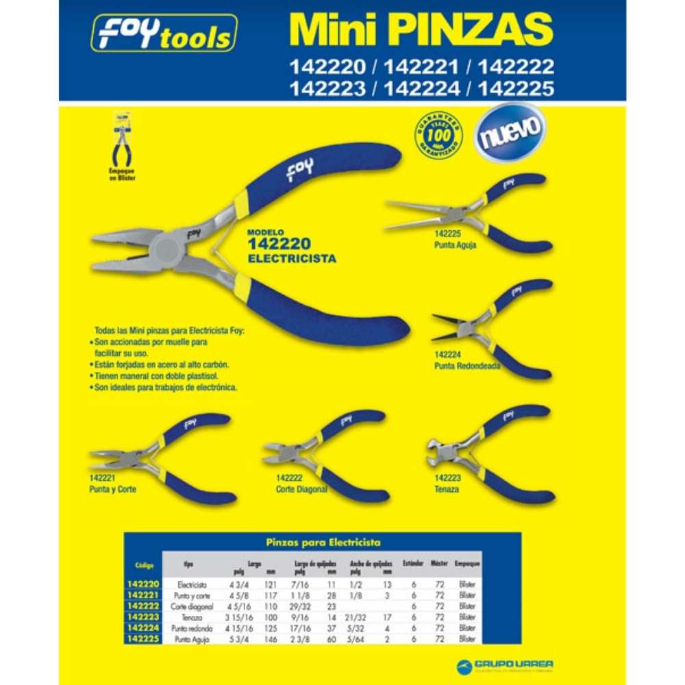 Mini pinza para electrónica con mango de vinil de 4-15/16″, punta redonda Foy