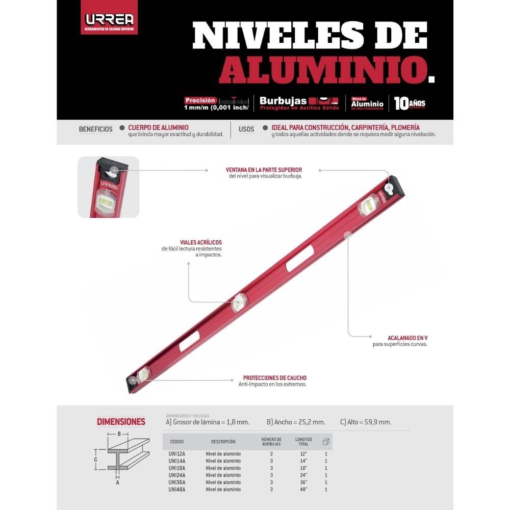 Sé el primero en valorar “Nivel anti-impacto 12″ de aluminio Urrea”