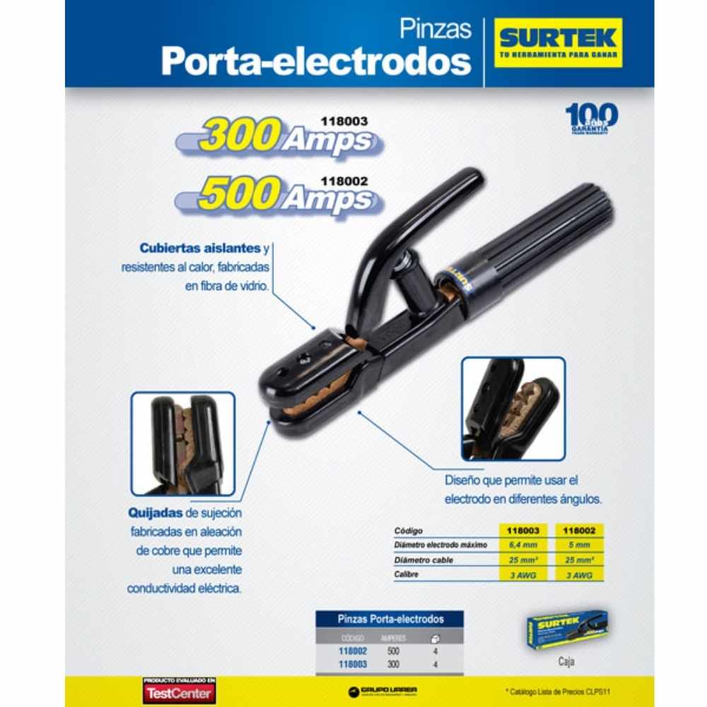 Pinza porta electrodos 500 A Surtek