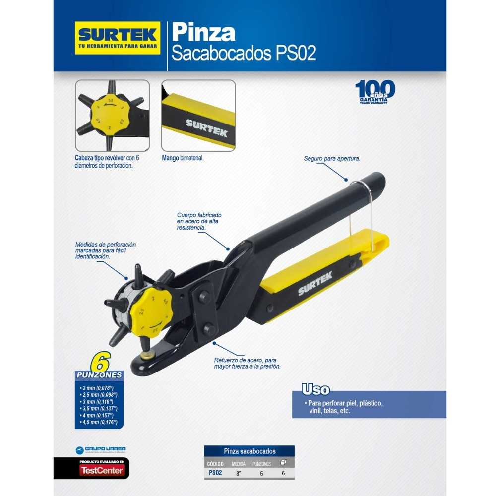 Pinza sacabocados tipo revolver con 6 medidas de perforación Surtek