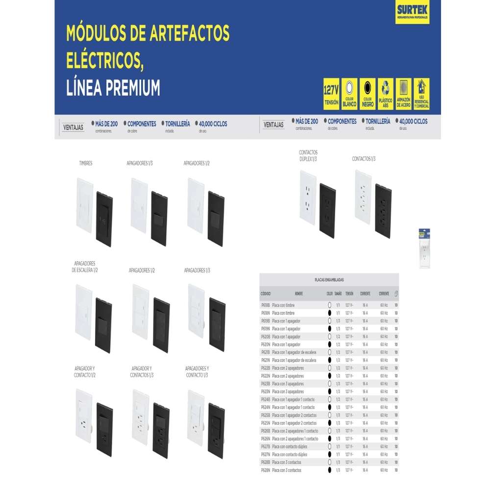 Placa 1 Interruptor 1/2, 3 vias, línea Premium, color negro Surtek