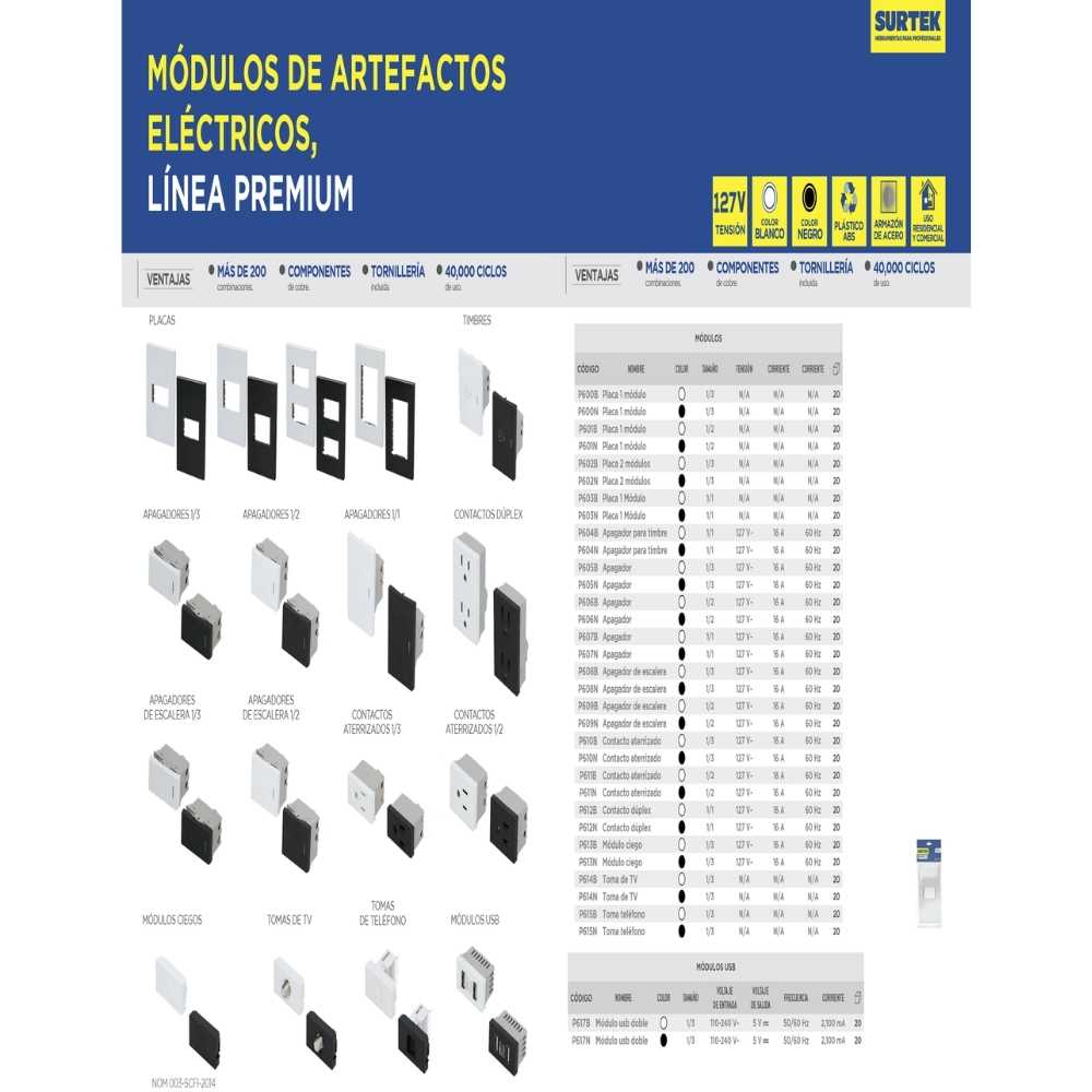 Placa 2 Interruptor 1 contacto 1/3, línea Premium, color blanco Surtek