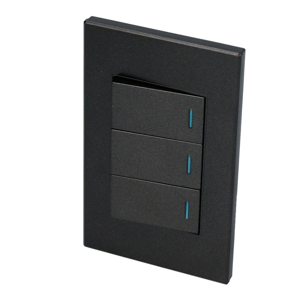 Placa 3 Interruptor 1/3, línea Premium, color negro Surtek
