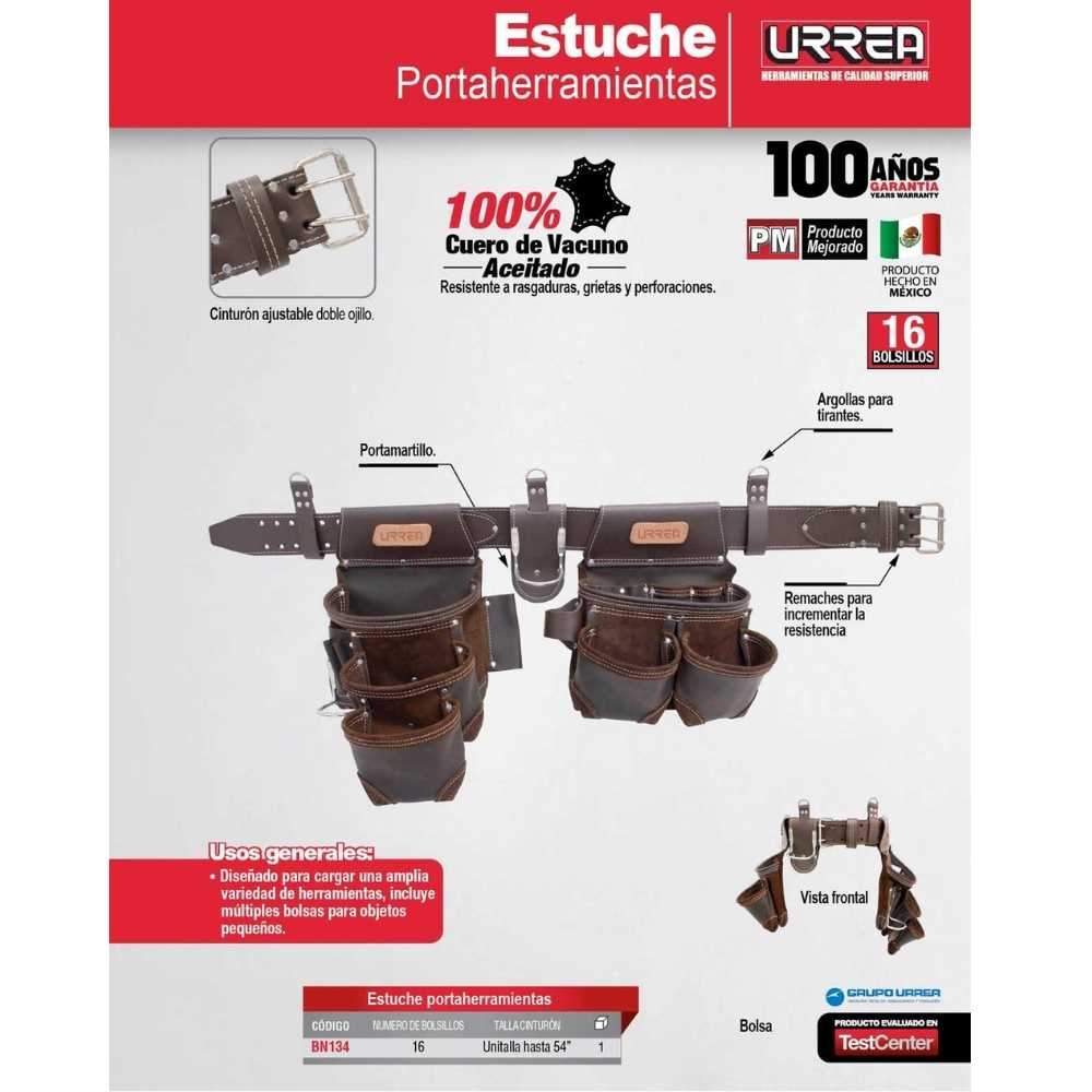 Portaherramientas de piel con cinturón 16 bolsillos Urrea
