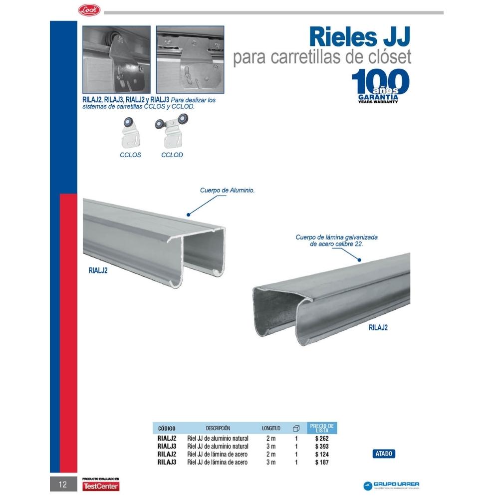 Riel tipo JJ para clóset 2 m, de lámina Lock