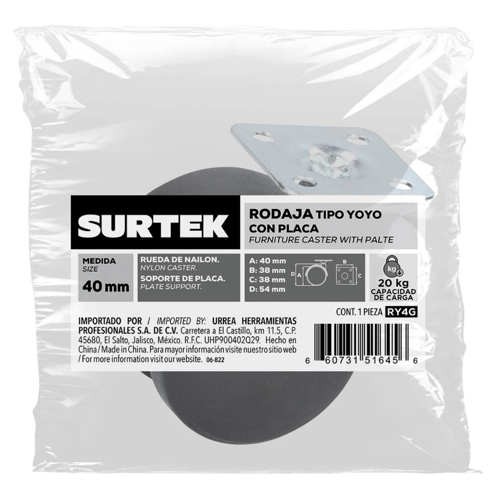 Rodaja tipo yoyo con placa 40 mm Surtek