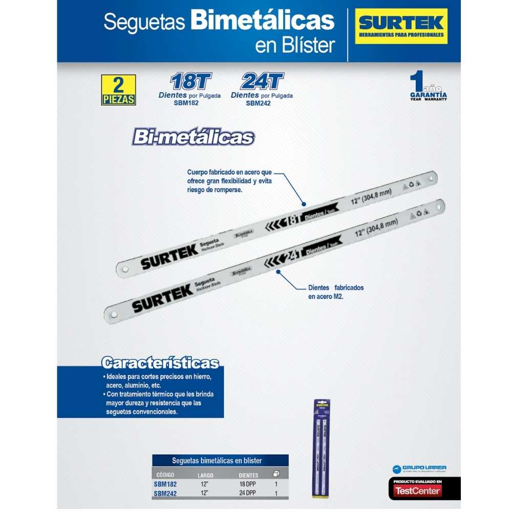 Segueta bimetálica de 12″, 24 DPP, 2 piezas en blíster Surtek