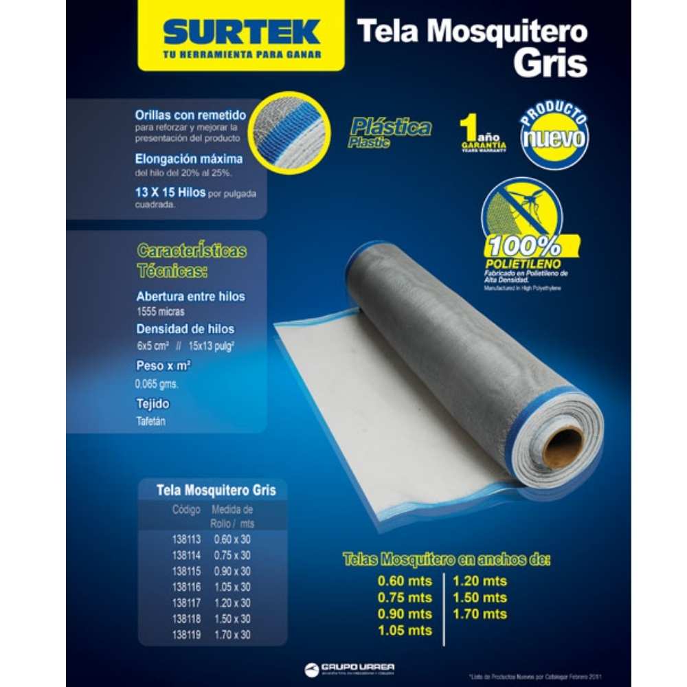 Tela para mosquitero de plástico gris 0.90 x 30 m Surtek