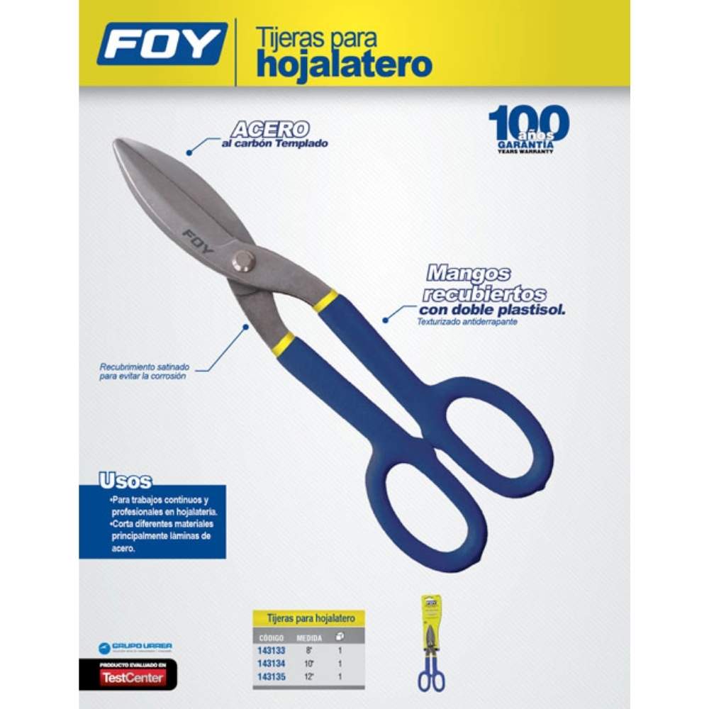 Tijeras para hojalatero con mango rubber grip 8″ Foy